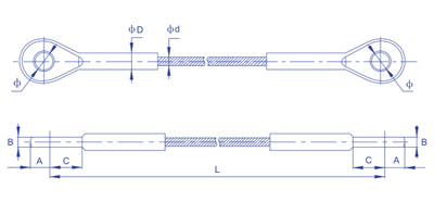 | 產(chǎn)品型號 | 鋼絲繩直徑d (mm) | A (mm) | B (mm) | C (mm) | D (mm) | 孔徑 Φ (mm) |